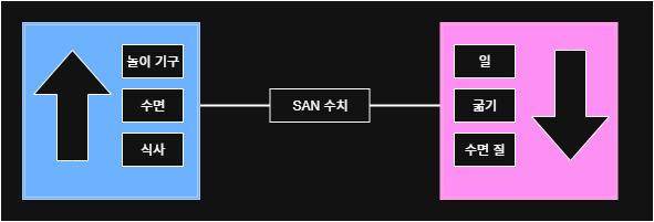 | San 수치 회복 | San 수치 감소 | San 수치 높을 때 | San 수치 낮을 때 | |