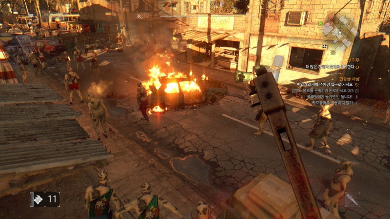 레프트 4 데드에 특수 좀비가 있는 것처럼 다잉 라이트도 주변 좀비를 불러 모으거나, 터지거나 하는 특수 좀비가 있는데요. 오픈월드 겸 약간의 현실성을 주려고 노력해서 그런지 게임이 진행될수록 수많은 스킬을 얻은 주인공은 좀비들을 그냥 밀치고 다닙니다.