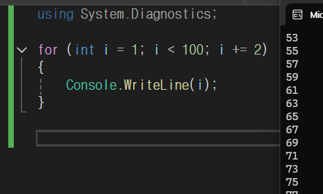 이렇게 평행하게 한 줄로 나왔는데, C#은 수직으로 나오네요.