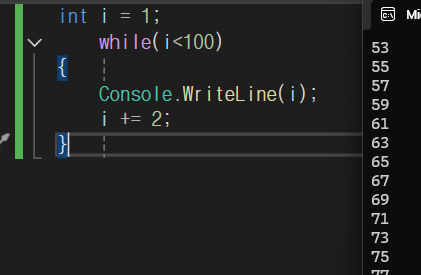 이런 식으로 대괄호를 그냥 옆에다가 붙여버리는데, C#은 자동으로 그 다음 문장으로 가네요.
