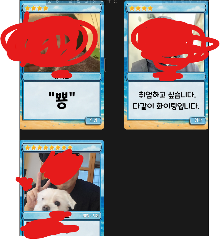 팀원들 카드도 간단하게 만들었습니다.