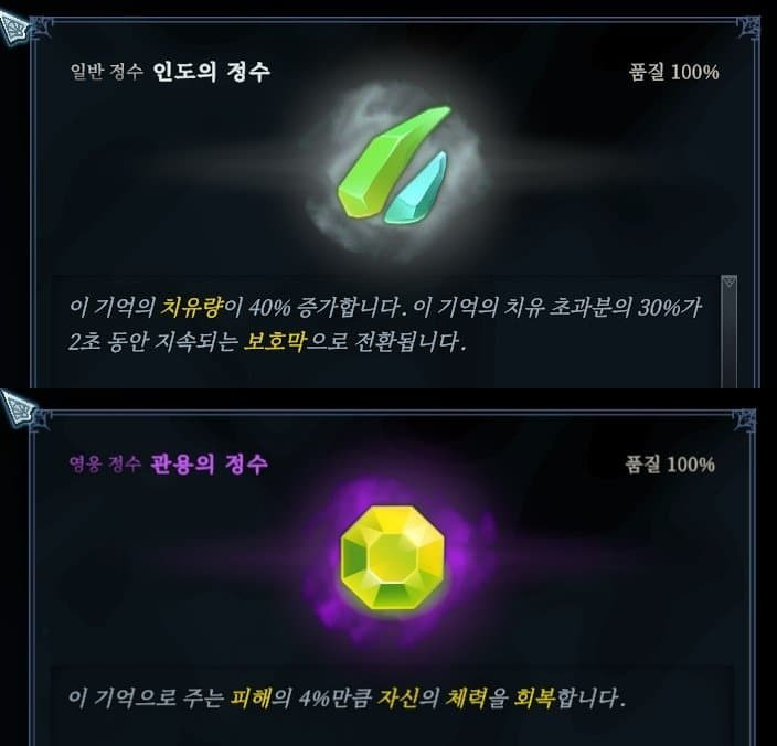 각 정수마다 등급이 있지만, 상황에 따라 일반 등급이 전설 등급의 보석(정수)보다 좋습니다.