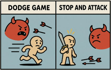 회피를 선택했을 때의 안정감을 보상으로 얻기 위해서 공격을 하지 않는 리스크를 감수해야 하고,