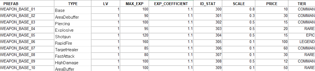 밸런스같은 경우에는 해본적이 없어서 일단 Brotato를 플레이 후 녹화한 영상을 기존으로 각 무기의 스탯과 몬스터의 압박감 등을 설정했습니다.